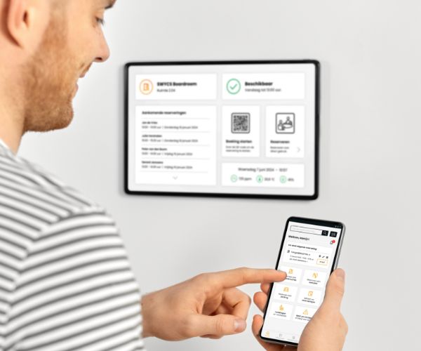 • Boek een ruimte via het panel of mobiele app